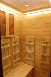 Это специально оборудованная кабина из липы для прогрева тела человека сухим теплом. Воздух в таких парных не нагревается. Инфракрасные лучи воздействуют на тело, равномерно прогревая мышцы, суставы и органы. Керамические излучатели похожи на лампы, имеют высокую температуру нагрева, поэтому защищены противоожоговыми решетками. Тело человека в таких саунах нагревается интенсивнее. Работает кабина за счет электричества. Двухместная инфракрасная сауна с керамическими излучателями подойдет как для домашнего использования, так и для коммерции.