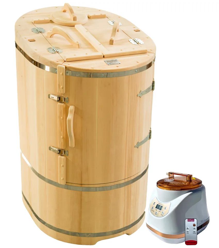Готовый комплект «Домашний»: кедровая бочка с парогенератором + био-защита изнутри и снаружи Готовый комплект - это полностью укомплектованный набор с фитобочкой для процедур парения. Круглая модель наиболее компактна и мобильна. Толщина стенок составляет 25 мм. Фитобочка оборудована откидными створками, дверцей и отверстием для головы. Верхний скос изделия делает положение головы более комфортным и улучшает обзор. Во время парения человек сидит внутри кедровой бочки, а голова находится снаружи. Благодаря этому исключается возможность перегрева. Подлокотники из кедра, встроенные ручки на створках и двери делают эксплуатацию более удобной. Парение в фитобочке благотворно влияет на организм в целом: повышается иммунитет, выводятся шлаки и токсины, улучшается работа органов тела и состояние кожи.