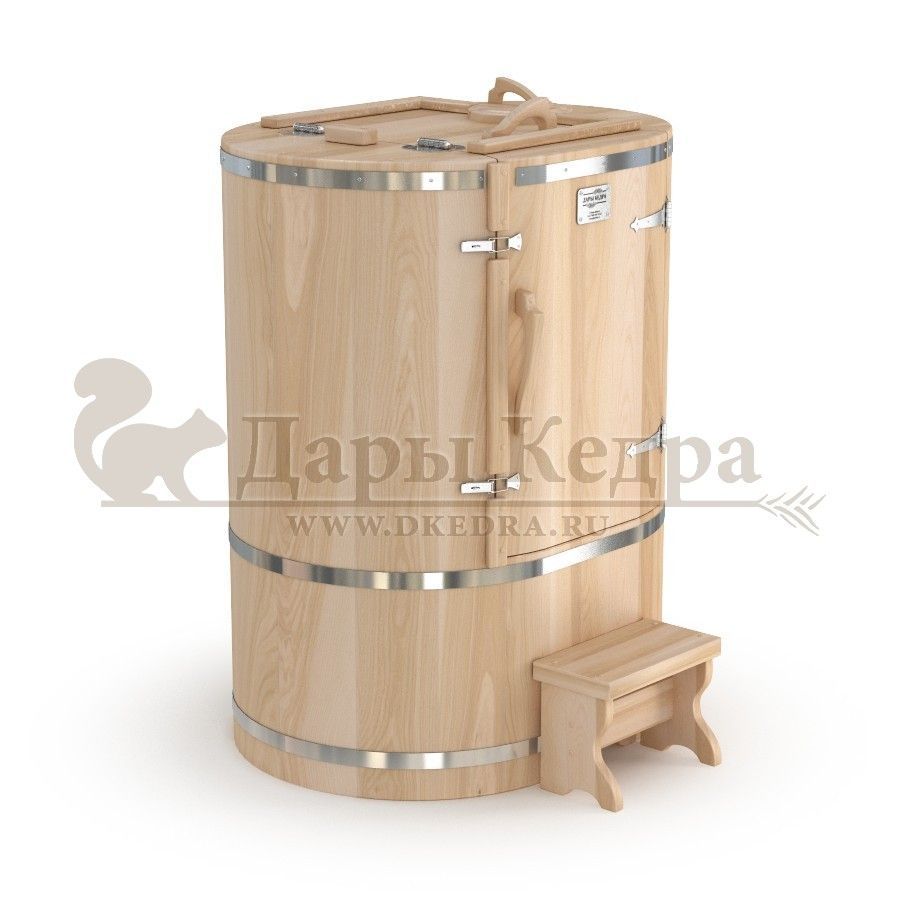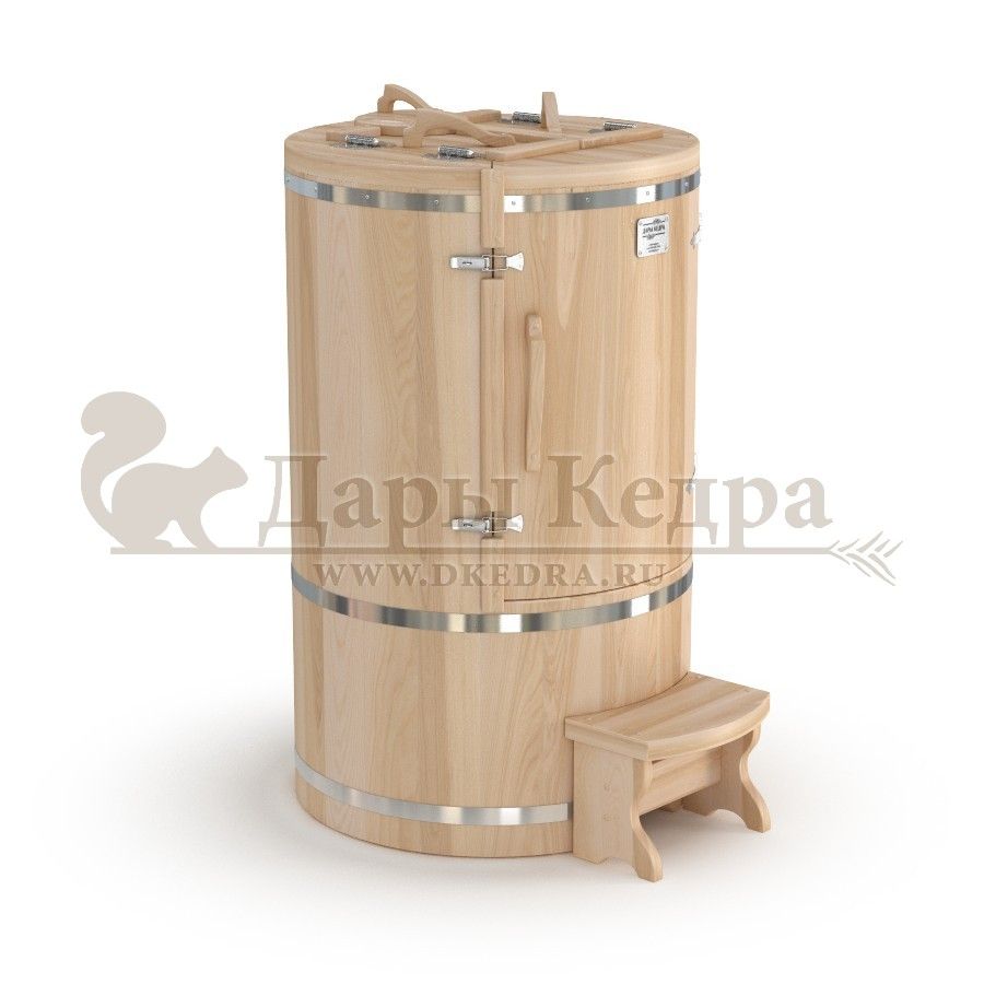 • Кедровая бочка (фитобочка) овальная со скосом «Классическая» Овальная фитобочка из кедра - это мини парная, которую можно использовать не только в спа-салонах, но и дома. Овальная модель более просторна и удобна в использовании. Толщина стенок составляет 25 мм. Верхний скос делает положение головы более комфортным и улучшает обзор. Она оборудована откидными створками, дверцей и отверстием для головы. Во время парения человек сидит внутри кедровой бочки, а голова находится снаружи. Благодаря этому исключается возможность перегрева. Подлокотники из кедра, встроенные ручки на створках и двери делают эксплуатацию более удобной. Парение в фитобочке благотворно влияет на организм в целом: повышается иммунитет, выводятся шлаки и токсины, улучшается работа органов тела и состояние кожи.