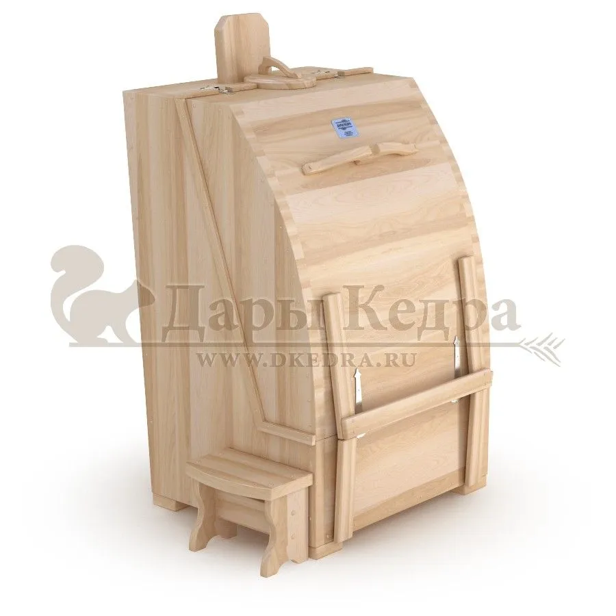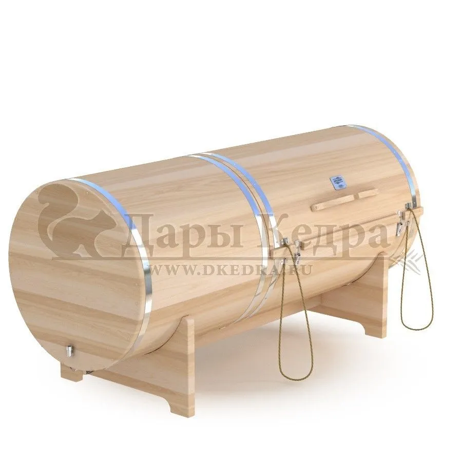 • Кедровая бочка (фитобочка) полулежачая «Профессиональная» Кедровая фитобочка полулежачая - это мини парная, которую можно использовать не только в спа-салонах, но и дома. Модель этой бочки наиболее комфортна, так как позволяет принимать процедуры полулежа. Толщина стенок составляет 40-45 мм, что позволяет увеличить срок службы изделия. Фитобочка оборудована откидными створками, дверцей и отверстием для головы. Во время парения человек находится внутри кедровой бочки, а голова снаружи. Благодаря этому исключается возможность перегрева. Подлокотники, подспинник из кедра и внутренние ручки делают эксплуатацию фитобочки более удобной. Парение в фитобочке благотворно влияет на организм в целом: повышается иммунитет, выводятся шлаки и токсины, улучшается работа органов тела и состояние кожи.