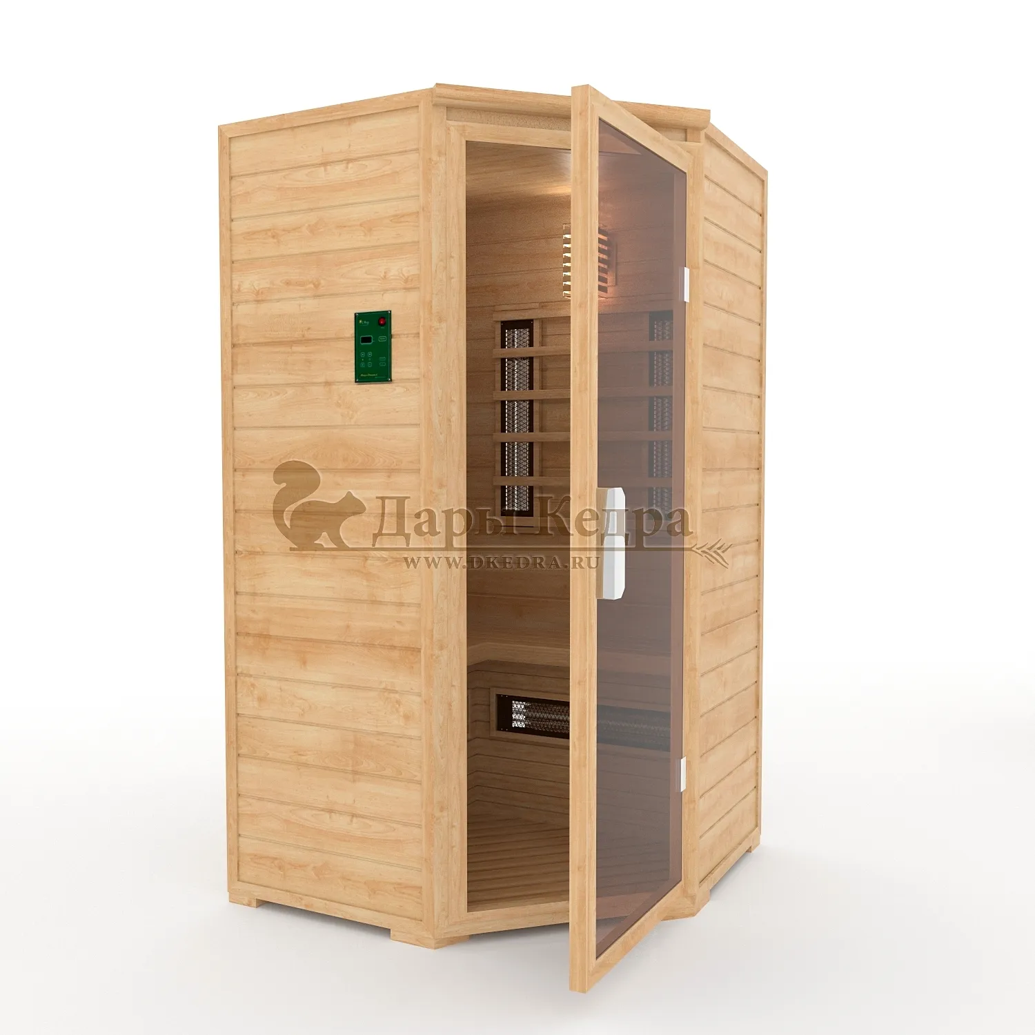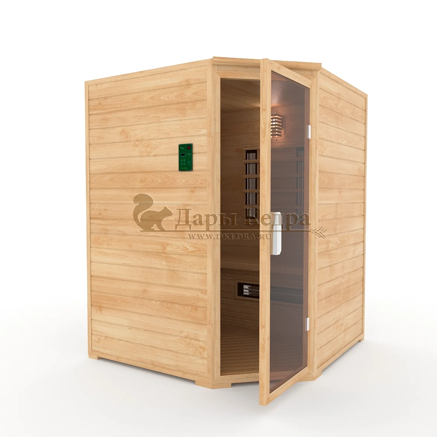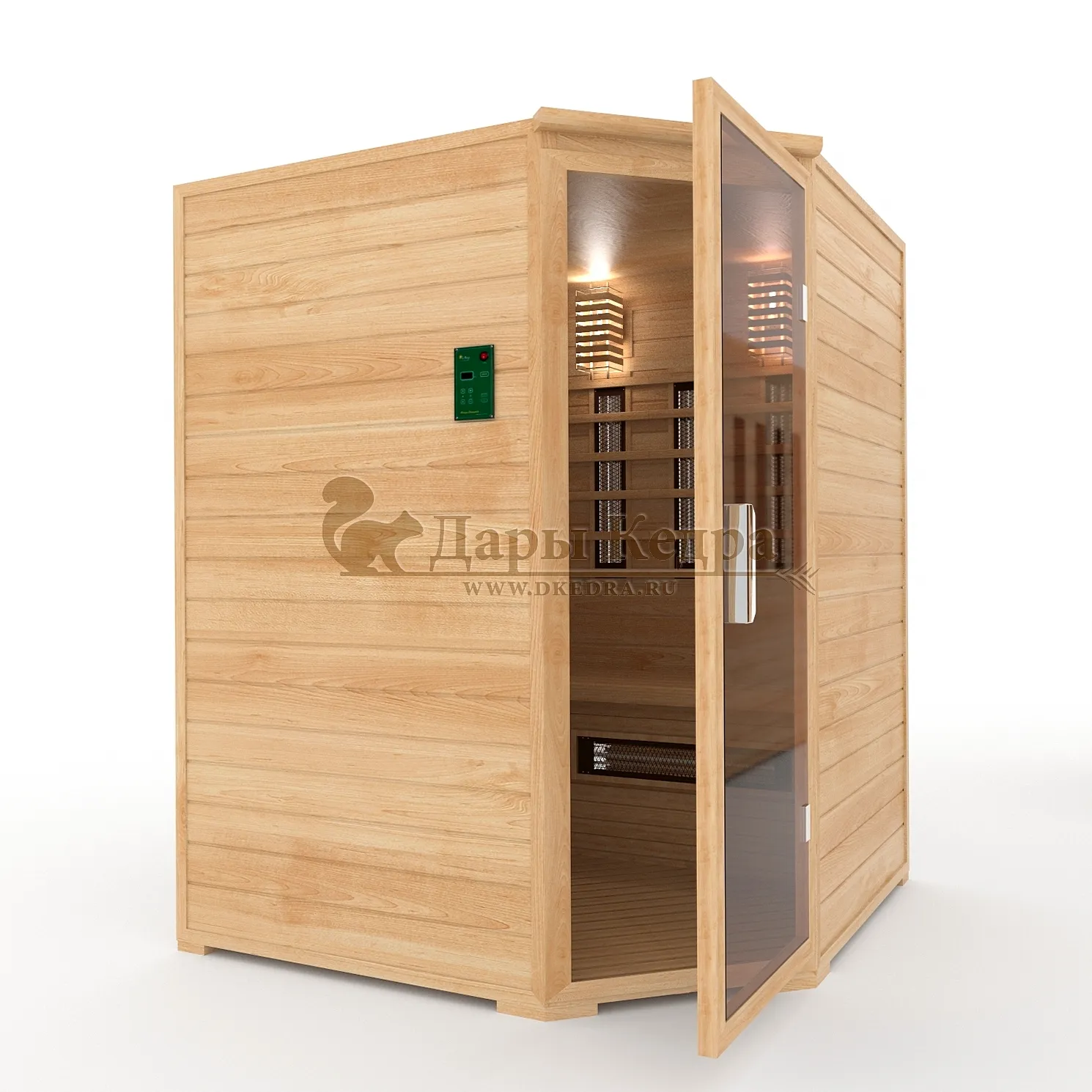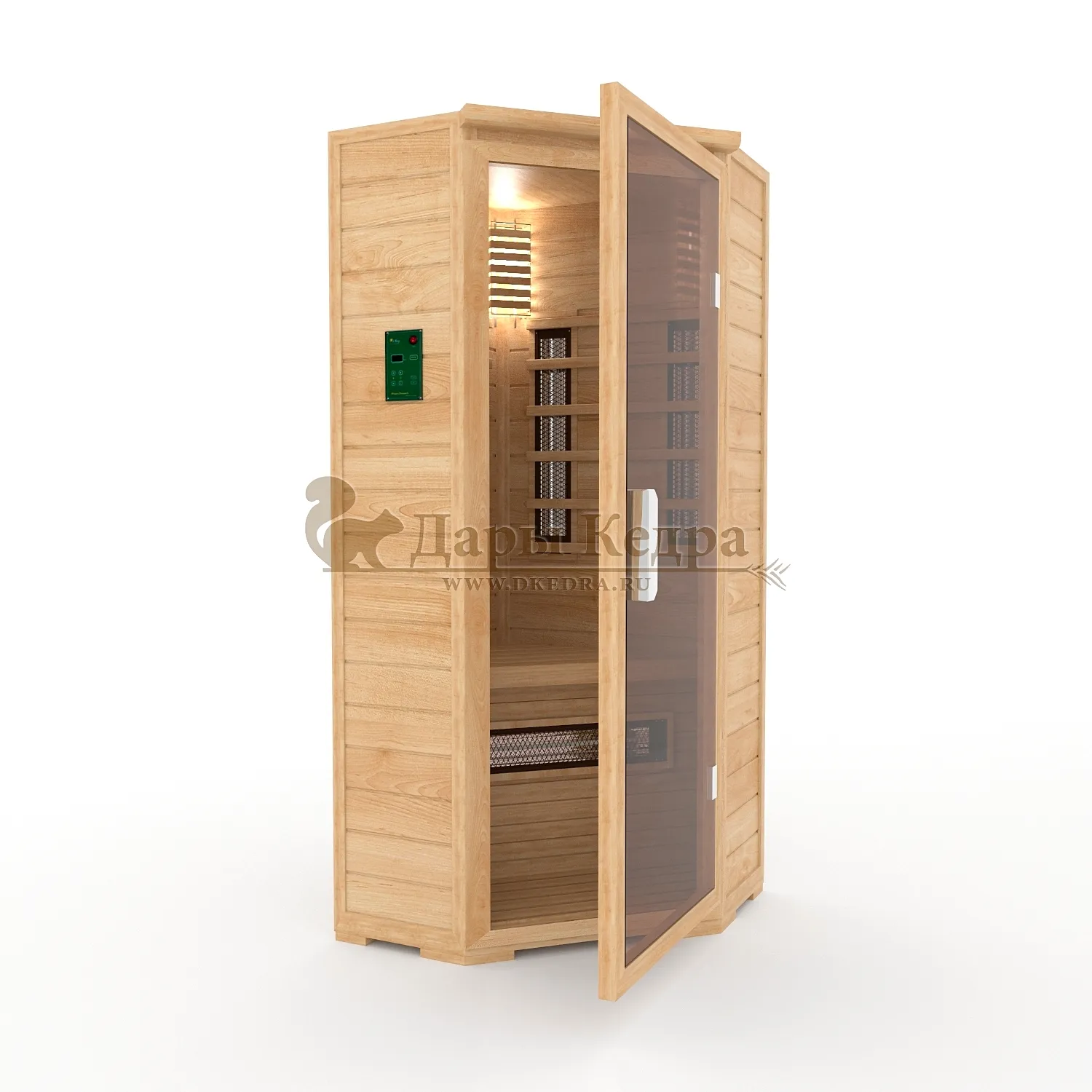 • Четырёхместная угловая инфракрасная сауна кабина из кедра с керамическими излучателями Погрузитесь в мир истинного расслабления и оздоровления с нашей четырёхместной угловой инфракрасной сауной из сибирского кедра. Эта сауна — идеальное решение для тех, кто ценит комфорт, качество и заботу о своём здоровье. Благодаря угловой конструкции, она идеально впишется даже в ограниченное пространство, создавая уютный уголок для релаксации в вашем доме или коммерческом помещении. Преимущества инфракрасной сауны с керамическими излучателями: Глубокий и равномерный прогрев: Керамические излучатели обеспечивают интенсивное и глубокое проникновение инфракрасных лучей в тело, прогревая мышцы, суставы и органы без перегрева воздуха. Это способствует более эффективному потоотделению и детоксикации. Целебная сила сибирского кедра: Изготовленная из экологически чистого сибирского кедра, сауна наполняет воздух неповторимым ароматом, который обладает антисептическими и успокаивающими свойствами. Кедр способствует укреплению иммунитета, улучшению состояния кожи и общему оздоровлению организма. Экономичность и безопасность: Сауна работает от электричества, потребляя всего 3.6 кВт, что делает её экономичной в использовании. Керамические излучатели защищены противоожоговыми решетками, гарантируя вашу безопасность во время сеанса. Улучшение самочувствия: Регулярные сеансы в инфракрасной сауне способствуют улучшению кровообращения, снятию стресса, уменьшению мышечных болей и выведению токсинов, даря вам заряд бодрости и энергии. Дополнительные опции для максимального комфорта и индивидуальности: Внешняя установка панели управления: Управляйте температурой и временем сеанса, не заходя в кабину. Цельный пол из кедра Для полной изоляции и эстетики. Вентиляционная задвижка Для поддержания естественного воздухообмена. СПА-опции Аудиосистема, соляные панели из гималайской соли (с подсветкой и без), цветотерапия для полного погружения в релакс. Двери Дверь с термостеклом (бронза) для повышенной безопасности и стиля. Дополнительное освещение Настенные светильники с абажуром из кедра, подсветка потолка и полка для создания особой атмосферы. Защитные покрытия Изменение цвета снаружи, покрытие воском или лаком для долговечности и индивидуального дизайна. Покрытие маслом полка, подспинника, решетки под ноги и изнутри для водоотталкивающего эффекта и упрощения ухода. Банные аксессуары: Термометр, банный набор с фирменным логотипом. Выбирая инфракрасную сауну от «Дары Кедра», вы выбираете не просто продукт, а инвестицию в своё здоровье и благополучие. Создайте свой личный оазис спокойствия и гармонии уже сегодня! Обращаем Ваше внимание что в стандартную комплектацию входит трапик для ног, но вы можете его заменить на цельный пол совершенно бесплатно!
